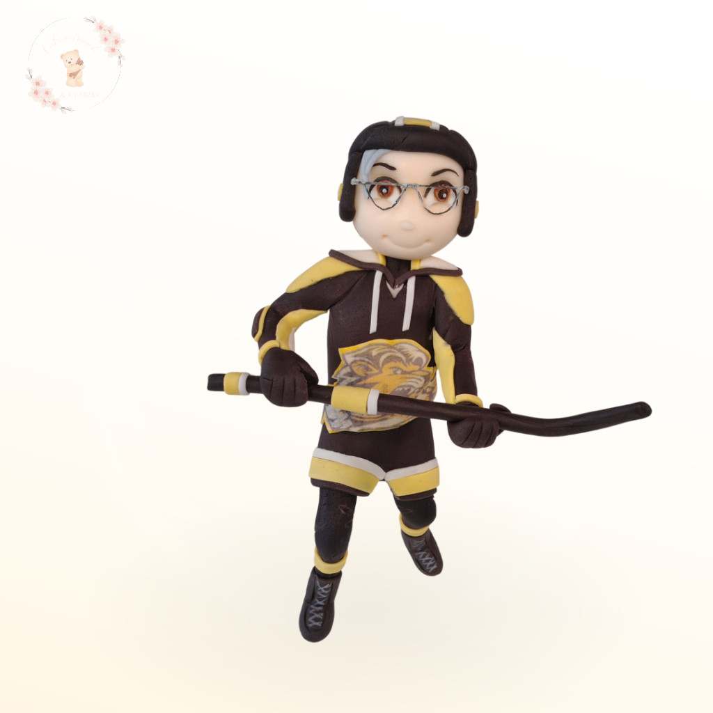 egyedi sportos tortafigura jégkorongos lány karakterrel, kézműves inspirációs tortadísz