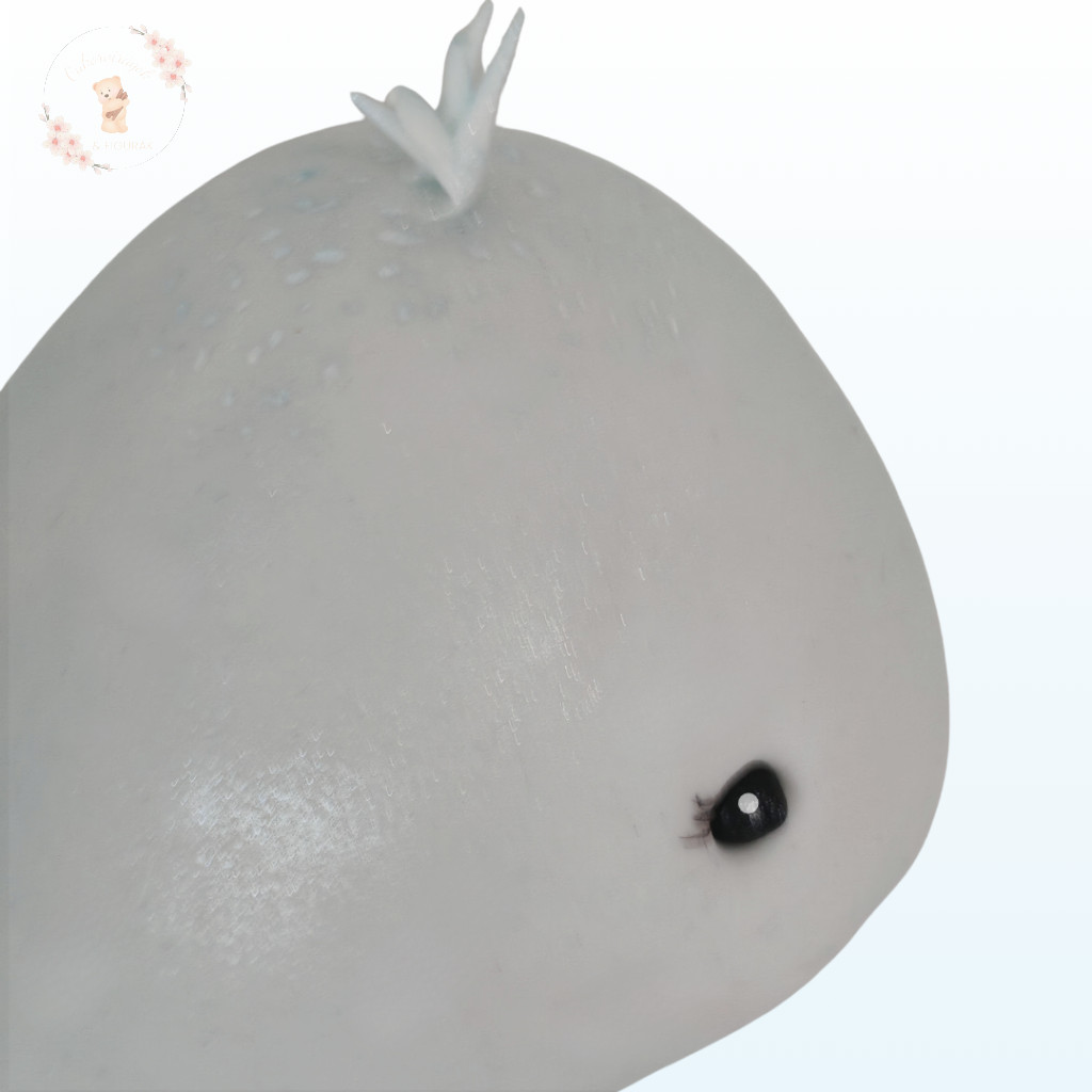 Látványos, kézzel készült nagy bálna tortadísz, amely önmagában is meghatározó eleme lehet egy tengeri témájú tortának.