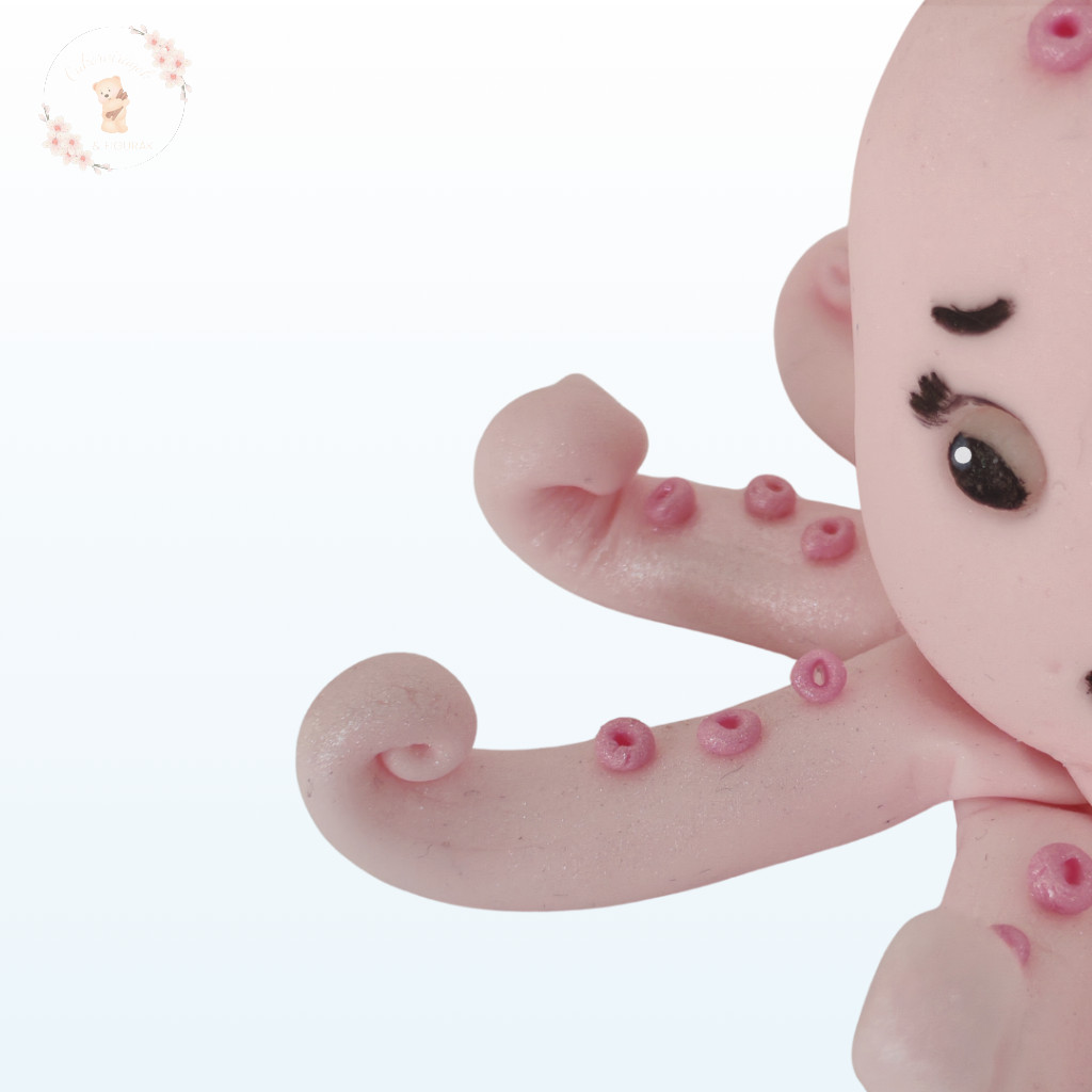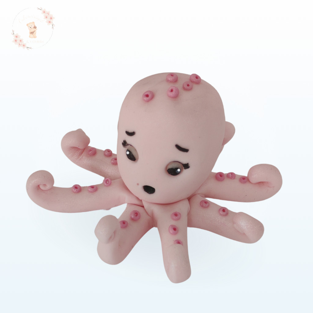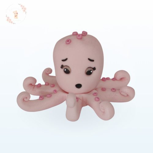Kézzel készült rózsaszín polip tortadísz, amely kedves és játékos kiegészítője lehet tengeri témájú tortáknak. Kisebb mérete miatt önmagában vagy más figurákkal együtt is jól mutat.